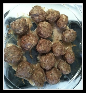 Place all meatballs in a shallow baking dish and place in oven for 20-25 minutes (DON’T BURN THE BALLS-nobody like dry balls)